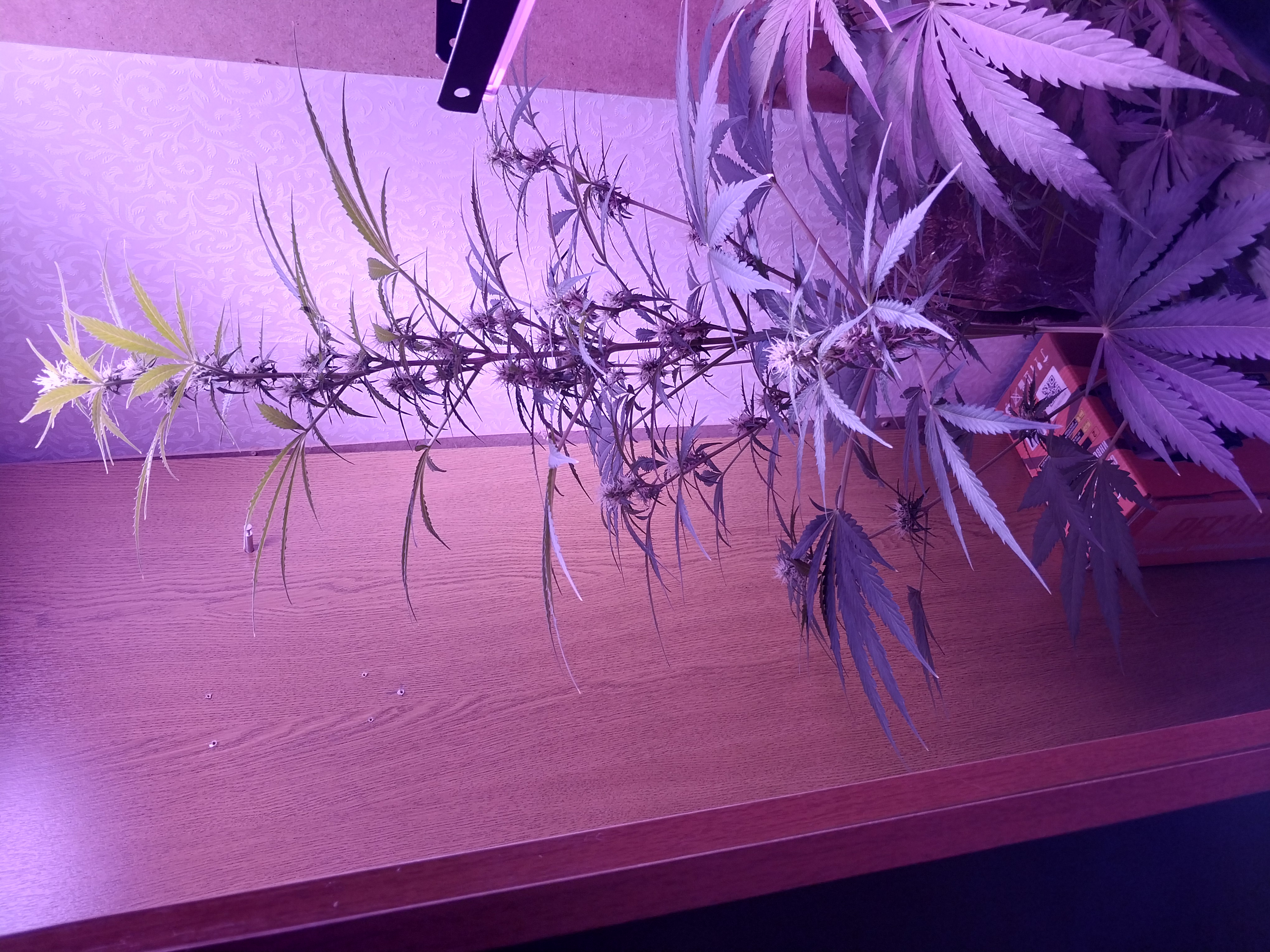 Росла в индоре под Днат400. Зацвела на второй месяц, цвела четыре. За это время я её почти похоронил, оживил, пережила грибных комариков, трипсов, на веге замерзала, перегревалась не единожды. На середине цвета начал подрезать и курить т.к. листья все опали во второй раз окончательно и шишечки перестали цвести и пожелтели. Почти половину скурил, приподнял лампу, и она кааак начала цвести! Таких цветов я не видел, там чашечка на чашечке ёлочкой растёт. Короче за месяц скурил наверное 60-70. И ещё висит сохнет примерно двухлитровая банка. Эффект однозначно хай, но перебрать легко т.к. догоняет позже.