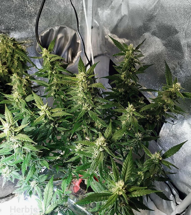 Представляет собой качественный, быстрорастущий и урожайный сорт. Идеальный для новичков и опытных гроверов, благодаря его отличному иммунитету и устойчивости к вредителям. В индоре, этот сорт созревает всего через 8-9 недель, обеспечивая урожай около 550 г/м2. Рост в закрытых помещениях не превышает 100 см, делая его идеальным для небольших гроубоксов. Устойчив к различным погодным условиям на открытом воздухе. Содержит высокий уровень ТГК и КБД, что создает церебральное, бодрящее и расслабляющее эффекты, идеальные для опытных пользователей.