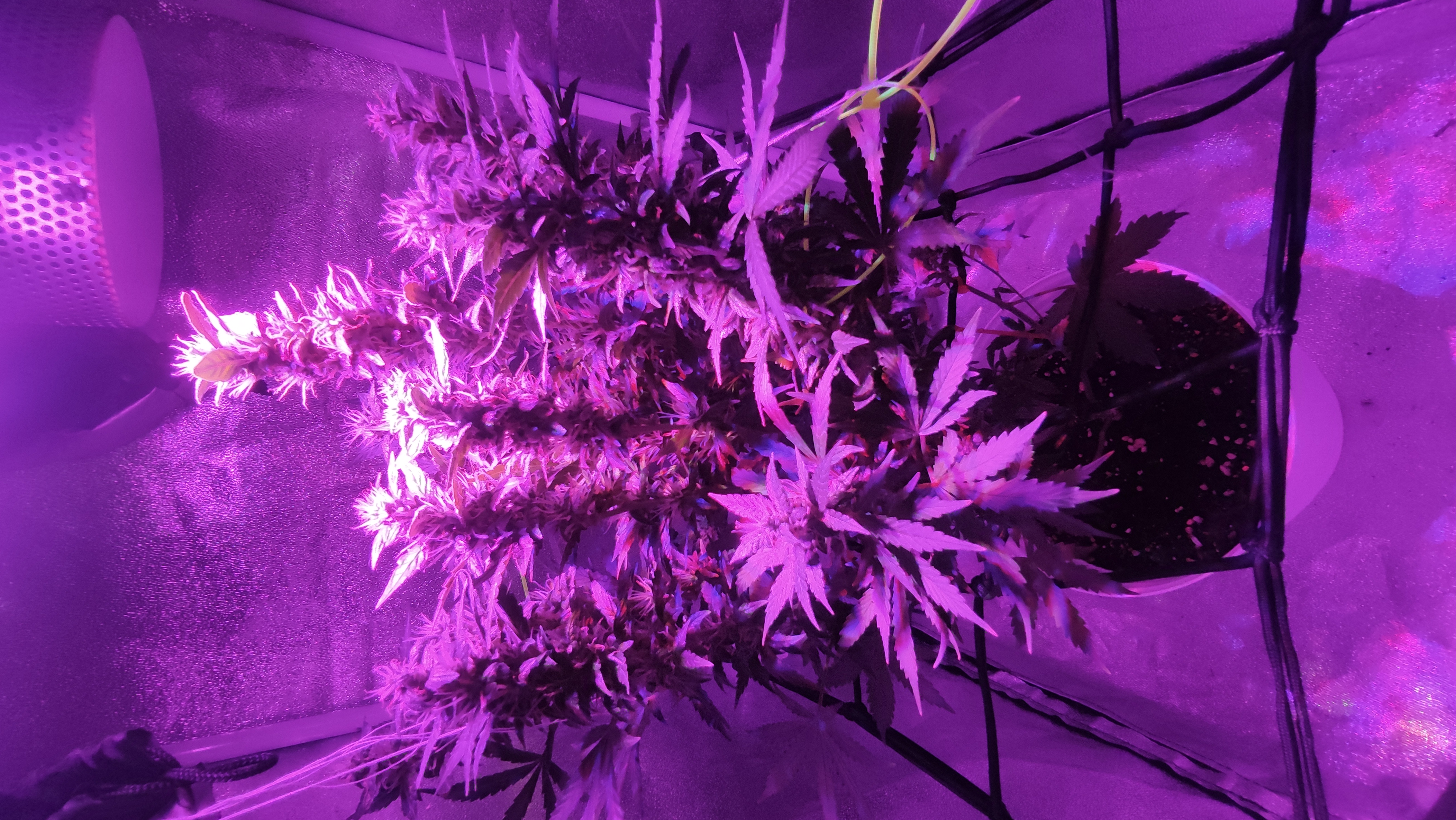 Второй гров. В этот раз использовал грунт биобиз лайт микс. Удобрения трипак индор биобиз, + допы Bio-Heaven, Alg-A-Mic, Acti-Vera. PH в диапазоне от 6.2 до 6.5. вода покупная стелмасс или святой источник. На фото растихе 58 дней от каски.