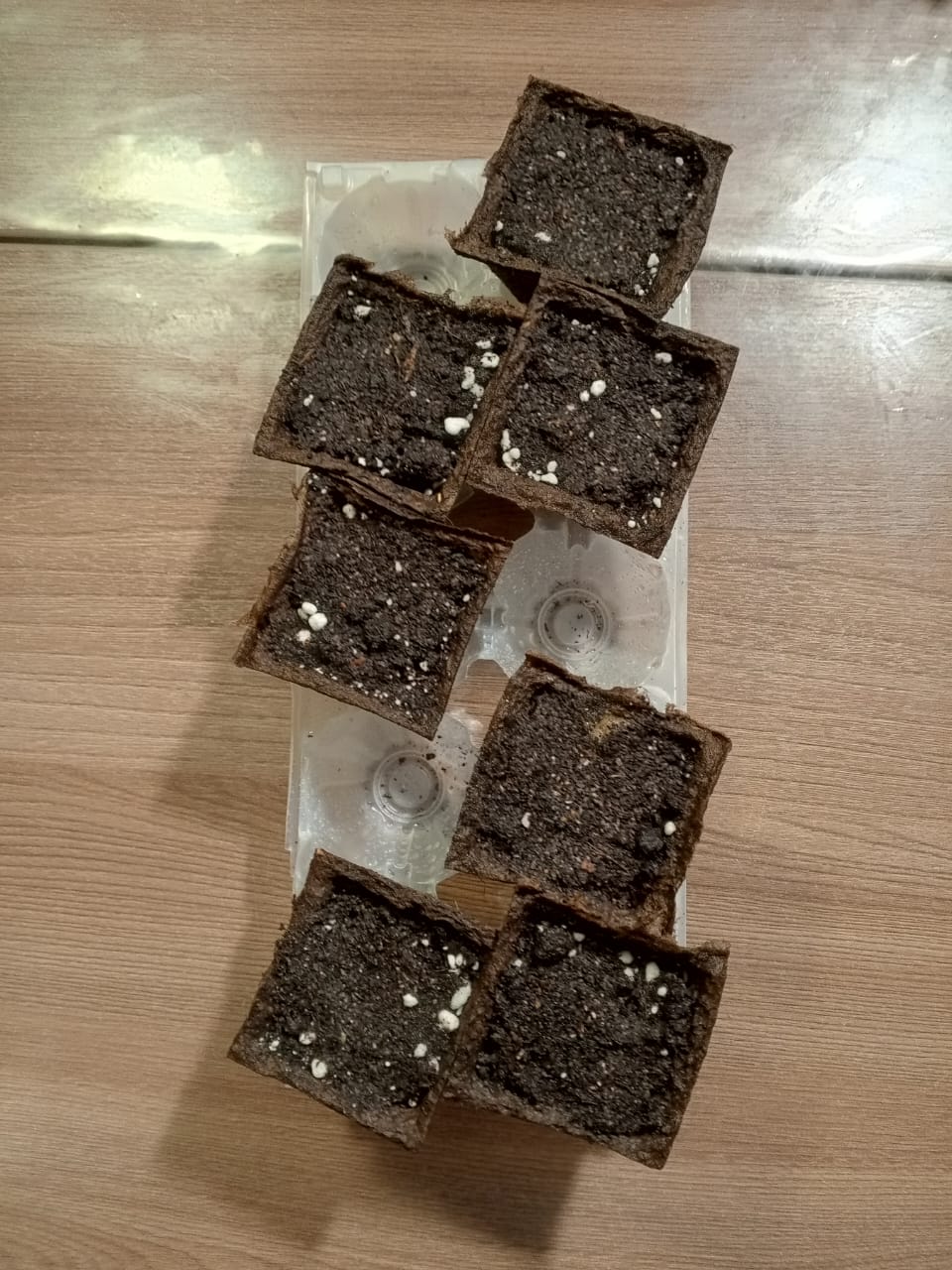 Замочил семена в растворе. Состав раствора (50 мл чистой питьевой воды и 10 капель 3%-й перекиси водорода) Первые корешки начали появляться менее чем через сутки. Через 48 часов проклюнулись все корешки и семена стали готовы для высадки в грунт. Подготовил горшочки для рассады и грунт - Грунт для лимона и Перлит 50х50 %. Проверим всхожесть.