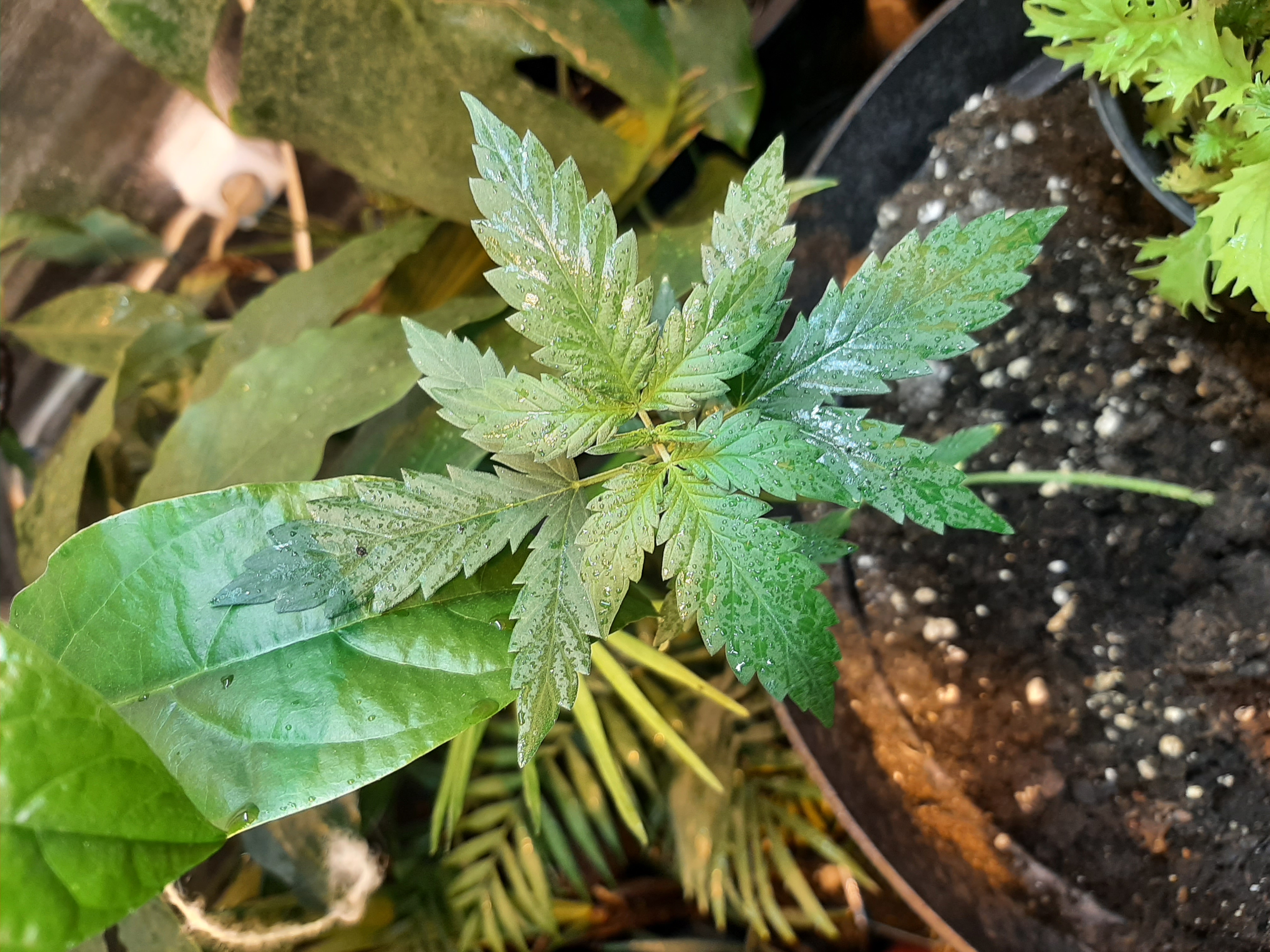 Первый гров мой. Тканевые горшки, какой-то дорогой грунт, не помню название. Закинул две семечки зачем-то в один горшок, видимо перестраховался. Девчатам на фото три недели от каски, но по росту и размаху листьев догнали GELATO, которому 4 недели. Внутри ощущение радости чтоли или чувствуется что-то давно забытое, потерянное в детстве. Спасибо люди